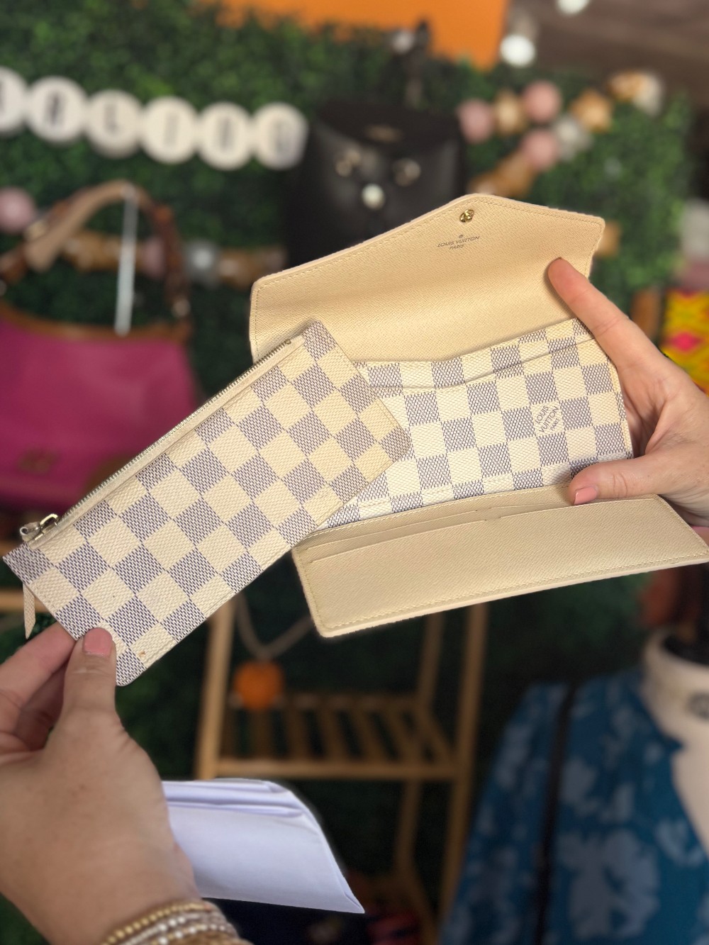 This Louis Vuitton Josephine wallet in Damier Azur has a beautiful pop of color inside and fits perfectly in the matching Graceful bag — we love a matching moment.