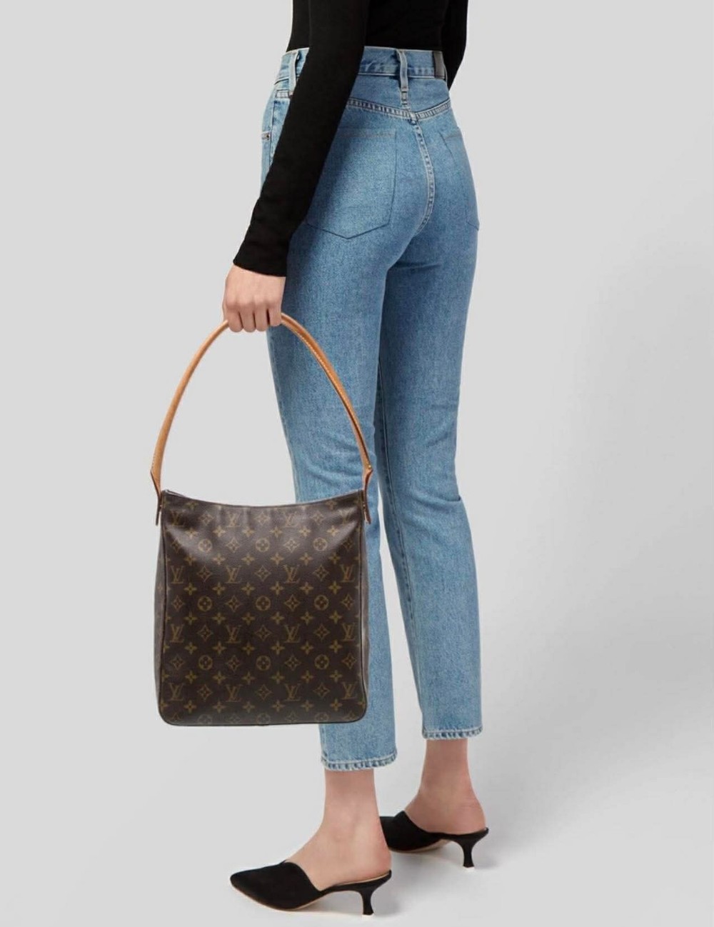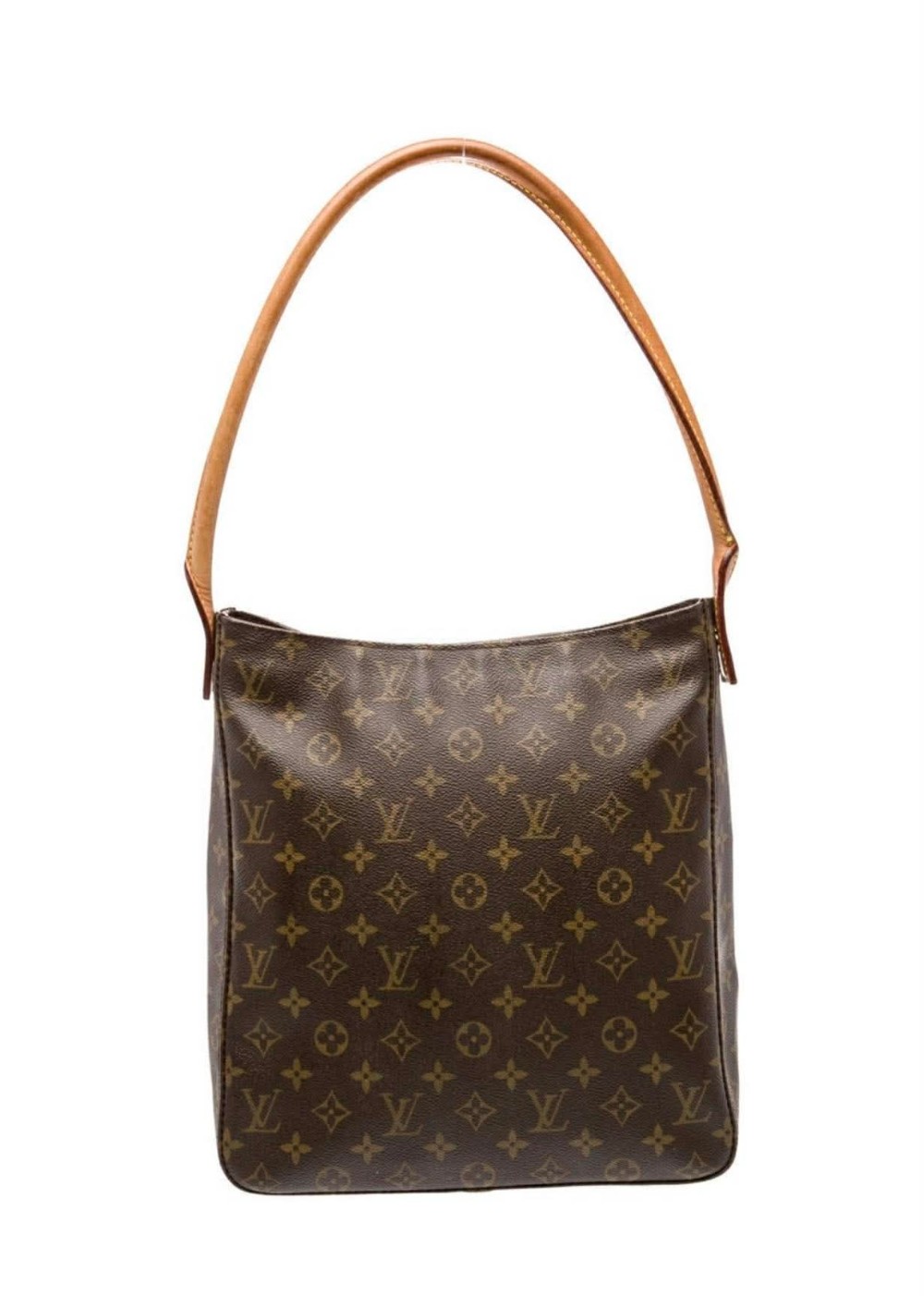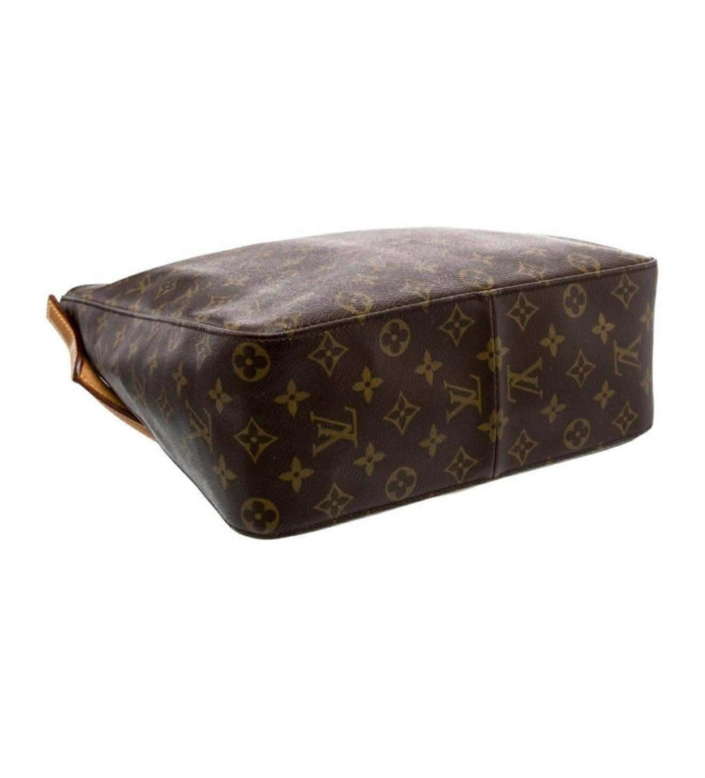 This authentic Louis Vuitton Looping GM features the iconic monogram canvas and the signature curved vachetta leather strap that fits perfectly under the arm. The GM size offers a spacious interior while maintaining that sleek, minimalist silhouette that made this style famous.