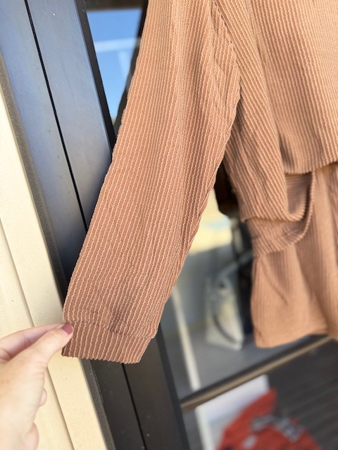 Y'all know we love a set! This chestnut brown color is perfect for fall and the long sleeves and shorts combo is great since it's still so hot!