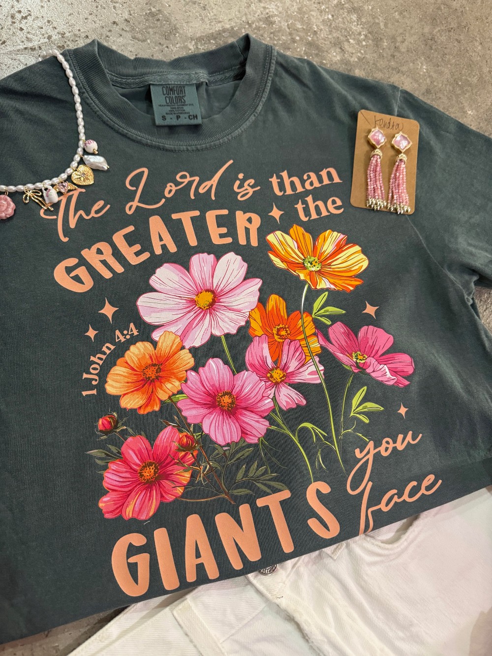 The Lord is Greater Floral 1 John 4:4 Tee