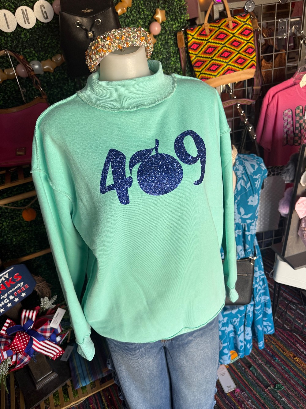 These mock neck sweatshirts are unbelievably soft, reversible, and have fun 409 decal to rep’ your favorite area code!