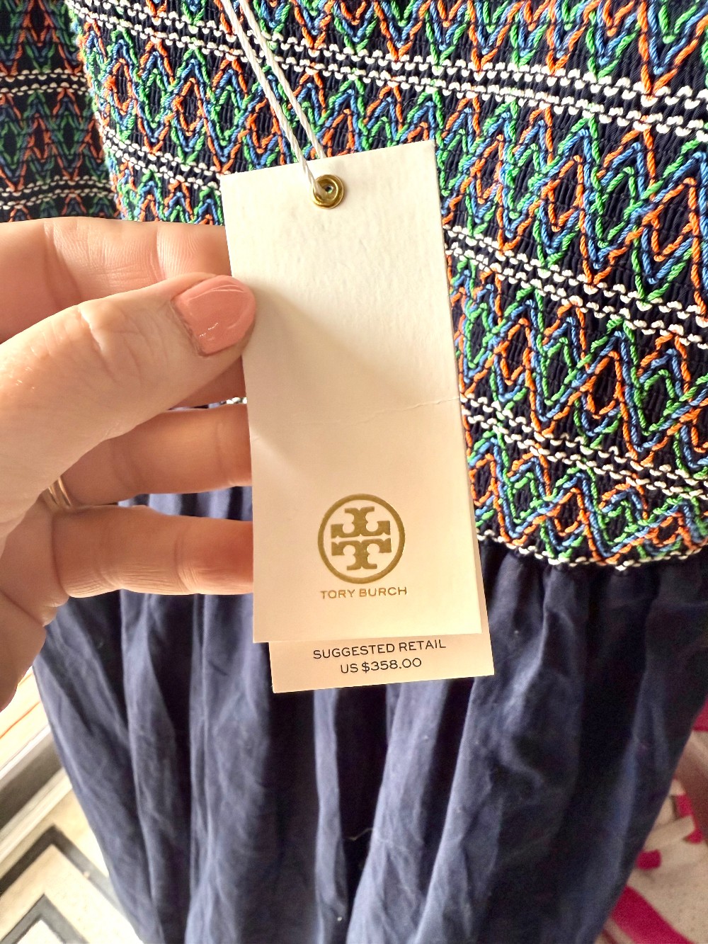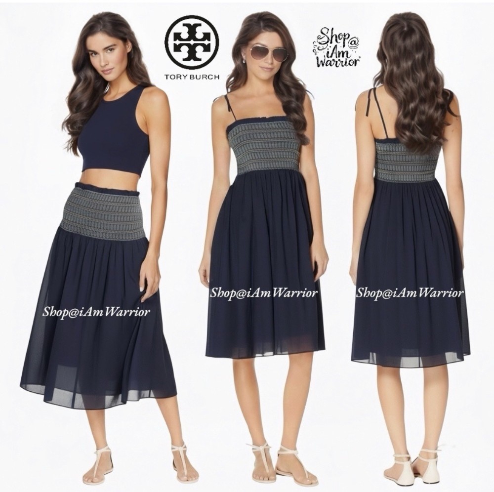This dress that pairs a smocked top and a flowy skirt is the only cover-up you'll need to pack for your tropical getaway. You can slide it down (tuck in the shoulder straps!) and it becomes a midi skirt. Style Name: Tory Burch Convertible Smocked Cover-Up Dress.